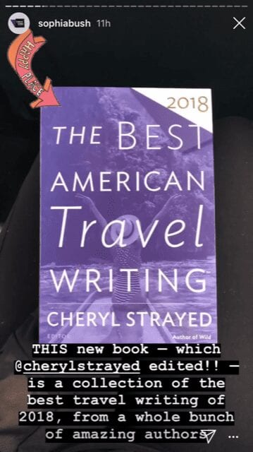Sophia Bush is reading The Best American Travel Writing 2018 edited by Cheryl Strayed and Jason Wilson