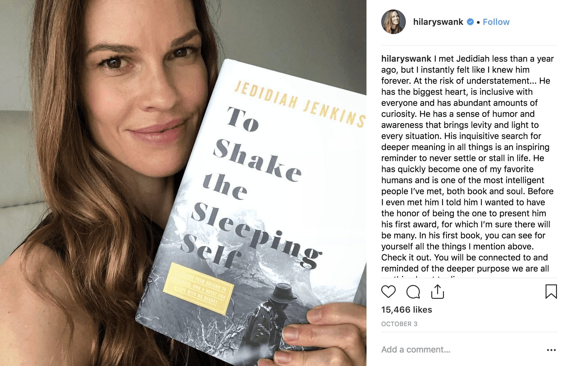 Hilary Swank is reading To Shake the Sleeping Self by Jedidiah Jenkins