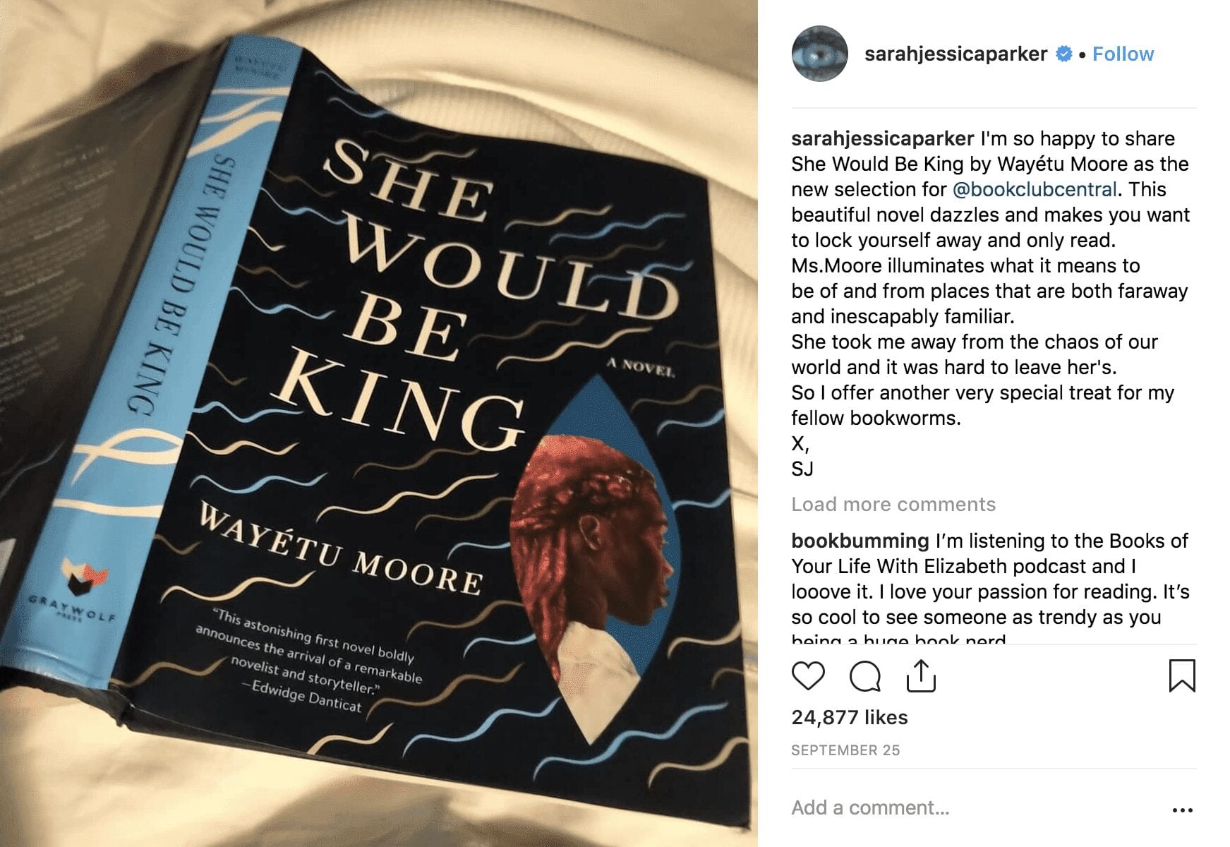 Sarah Jessica Parker is reading She Would be King by Wayétu Moore