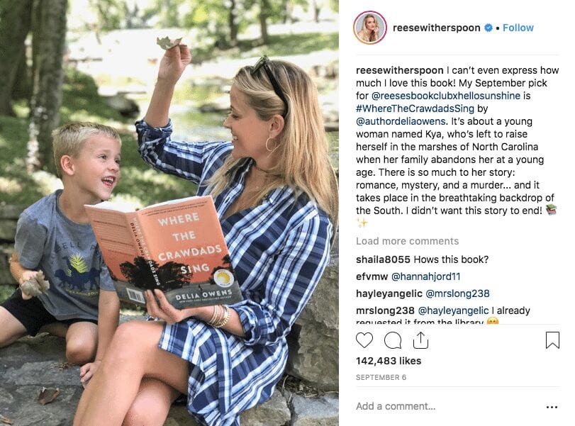 Reese Witherspoon is reading Where the Crawdads Sing by Delia Owens