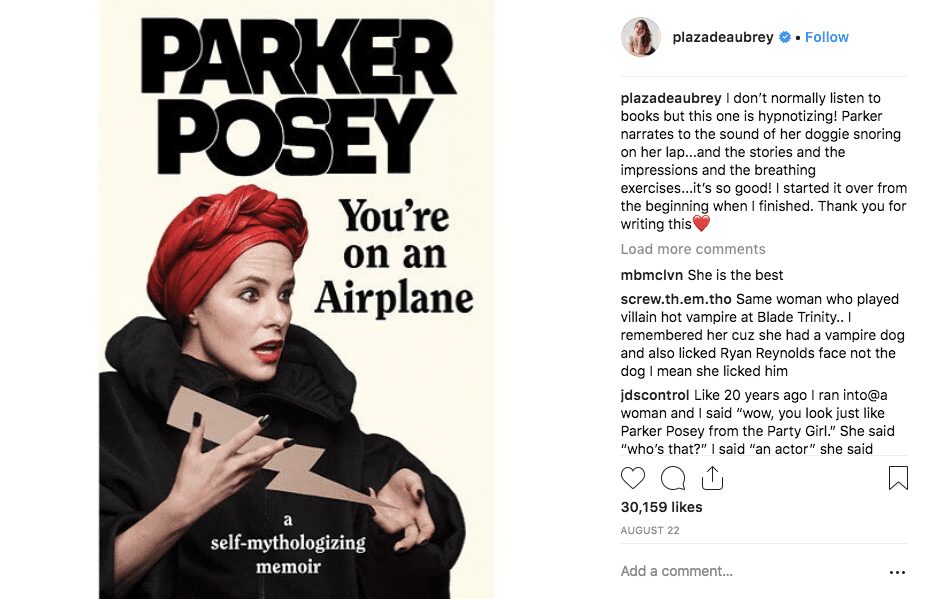 Shiri Appleby and Aubrey Plaza are reading You’re on an Airplane: A Self-Mythologizing Memoir by Parker Posey