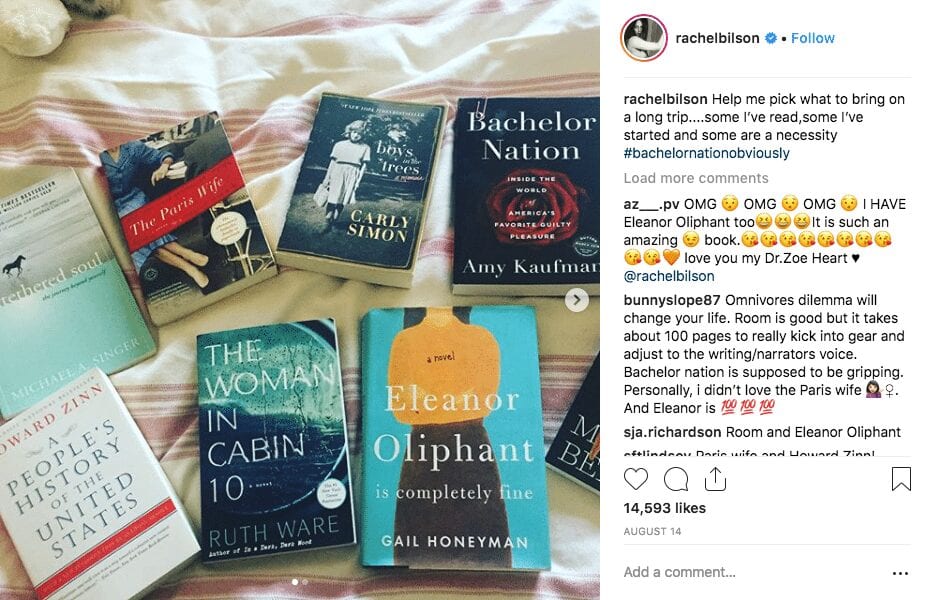Rachel Bilson is reading Bachelor Nation: Inside the World of America’s Favorite Guilty Pleasure by Amy Kaufman