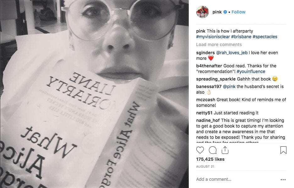 I love that the singer started sharing her reads! This novel by blockbuster author Liane Moriarty is set around Alice who wakes up on a gym floor and has to remember the last 10 years of her life. How is she 39 and how has her life gotten to where it is? Last she remembered she was 29, in love and pregnant.
